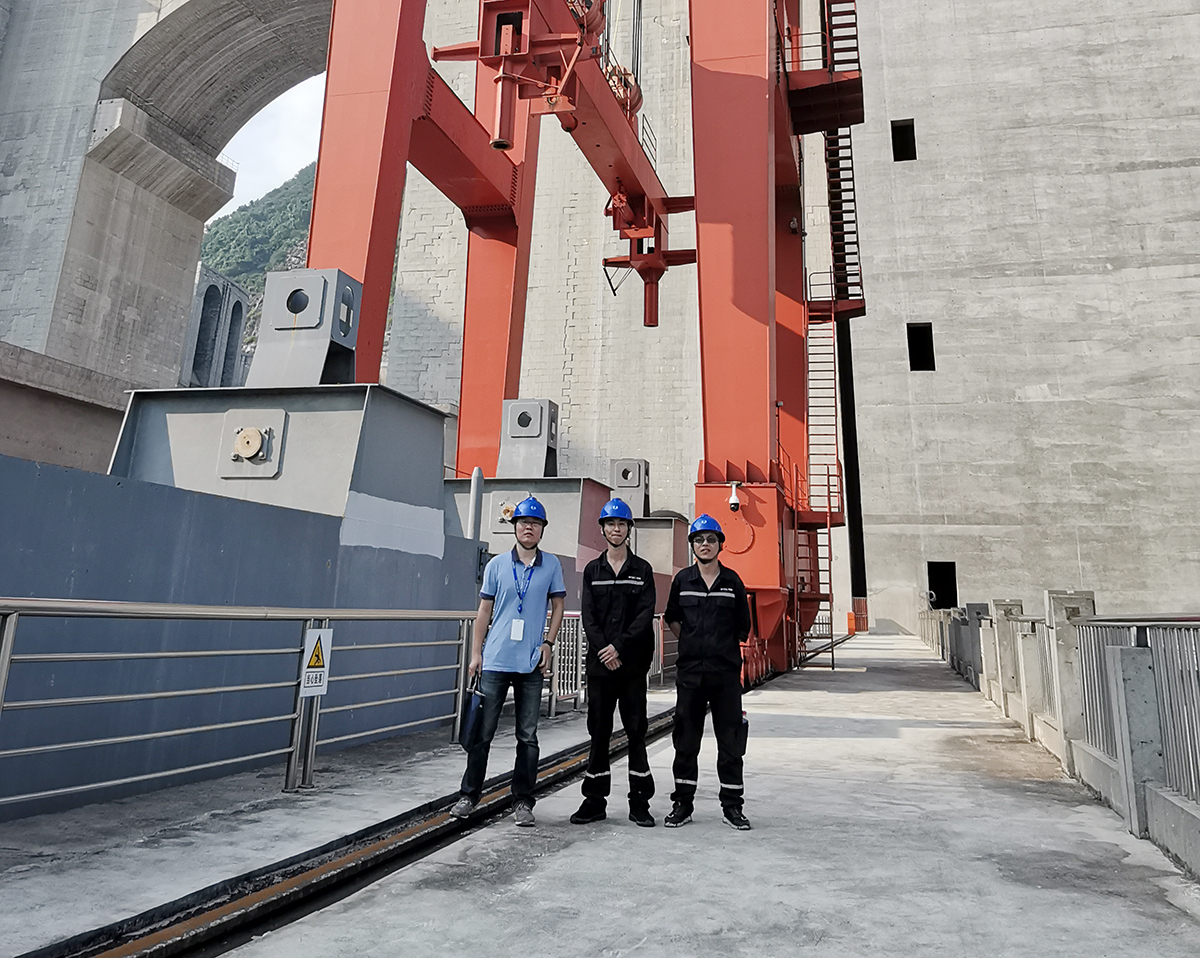 施工過程中,由于尾水門機抓梁不能落到地上,安裝過程中全程都是高空作業(yè),這無疑也加大了施工難度。而且,安裝期內恰逢當地多雨天氣,為了不延誤工期,售后工程師們時常要冒雨施工。雖然過程中困難較多,但均被一一克服解決,項目有序推進。